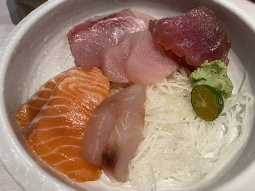 訂單方面,第一項打在單子上的生魚片丼飯遲遲沒有上,待我忍不住詢問服務生,他也沒說不好意思,只回了「我請師傅幫你作」。我可不是加點啊,這位女士!而兩位師傅在做什麼?在吧台嘻嘻哈哈的,菜沒出全,而兩個人竟雙雙沒注意。