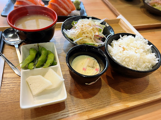 連假到附近訪友,臨時來用餐。空間寬闊、環境整潔乾淨,兩大一小點了2份定食再單點生魚片跟幾樣烤物。 定食除了白飯、主菜還有沙拉、小菜、手卷、茶碗蒸跟味增湯…😳,份量很足,而且每一樣單品都表現很好,蠻讓我驚訝。 現流透抽表現很驚豔,不會烤過乾,連觸鬚部位也都很好入口,整個定食價位CP值非常高! 單點鮭魚生魚片新鮮、厚度也夠。 椒鹽松阪豬沒有腥味,皮酥肉嫩搭配生洋蔥絲我個人非常喜歡。 明太子雞翅是我當天唯一點的口味比較重的一項單品,外皮酥脆內裡軟嫩又帶辣,很適合配啤酒。 餐後連平常對餐點滿挑剔的先生都說今天這頓飯...