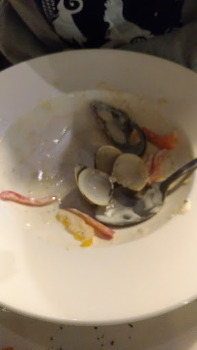 Read more點了 1.白醬海鮮麵 CP質一樣不錯吃,2.雞柳條 還ok(應該是冷凍的),3.小盤(第一次點,像早午餐拼盤) 店裡居然只有叉子,沒餐刀(傻眼了) 因為生菜+培根+香腸太大,無法直接入口,問了吧檯人員(應該是廚師吧!第一次看到)回說:沒有餐刀,直接示範只用叉子把很大一塊生菜"硬凹"好幾折 但還是很大口,硬凹的途中,把生菜弄掉盤外,擺盤都亂了....實在很無言,軟法麵包也沒烤過...