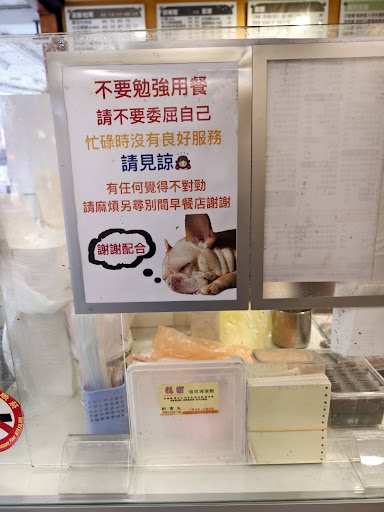 整間熱的要命 冷氣捨不得開 店內沒幾組客人 想說先固定電扇方向 被一個粉衣大嬸說電風扇共享 共享我覺得沒問題 但重點不知道用餐環境很熱嗎? 是很想外帶走人 看到外面又張貼一些要等候不然去別間早餐店的標語 該店舖教訓客人的氣焰真是不錯👏 開放內用環境炎熱油煙味重 食物口味可以說不怎麼樣 祝生意長榮 跟內用環境要一樣火熱才是 😂