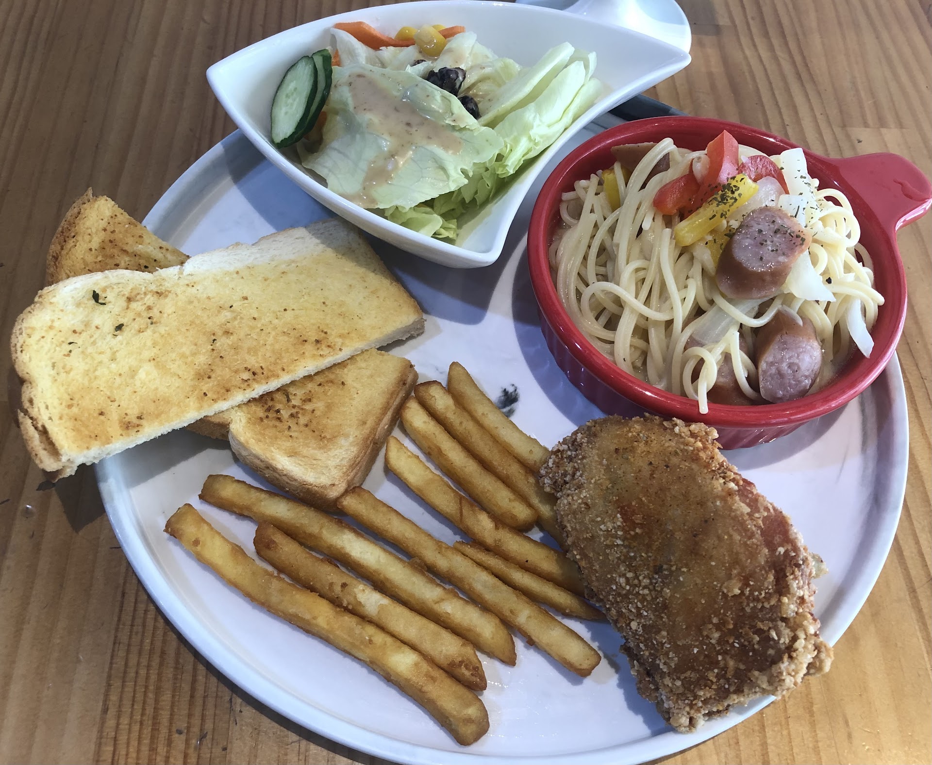 Read more墨西哥嫩雞漢堡還好,辣度不會很辣只有稍微一些些辣而已,肉質很嫩吃起來有點像紐奧良那樣,蛤蜊義大利麵炸雞拼盤還不錯,義大利麵我們口味選蒜香清炒的,麵條不會煮的過爛過硬也有入味,但吃到後面醬汁鹹了點,炸雞還不錯外皮酥脆肉質很嫩味道與一般外面賣的炸雞不同,薯條一般般不到特別,生菜沙拉跟麵包沒吃不予評論,蘿蔔糕普通沒有驚艷沒有煎的脆脆的可惜,古早味奶茶味道跟一般早餐店奶茶沒差距太大,紅茶味有出來只是不到特別,伯爵奶茶茶味很香個人覺得比較好喝,一樣價錢會建議點伯爵奶茶茶香比較重,店內採自助式,餐具醬料都要自取,吃完餐盤自行回收,老闆娘態度很好有熱情,餐點普遍價格稍高一點但大多都不雷,內用座位數不...