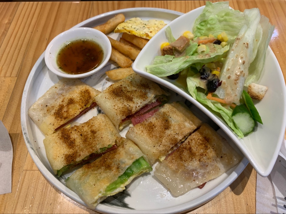 Read more餐點整體品質真的是對不起精緻2字 套餐份量很少,雖然菜單寫的豐富,但每樣東西都只有一點點 蛋餅單點可以,但真的不要加盤式$60 盤式=沙拉+薯條+卷蛋 卷蛋實際看起來像是一般煎蛋切成四分之一 薯條是我目前為止吃過早午餐裡附最少的 沙拉就只是一般沙拉 這樣加盤式60真的很過分,是加60升級當盤子才對 另外義大利麵套餐看菜單也是寫的很豐富 蛤蜊義大利麵套餐$200,內附沙拉、炸雞、薯條、香蒜吐司 香蒜土司非常乾扁,吃起來更重的是焦味,不怎麼出色的沙拉,不怎麼好吃的義大利麵,份量少的可憐的薯條,還算一般的炸雞 看到菜單真的是滿滿期待,實際餐點確讓人覺得空虛 另外總匯吐司的吐司居然沒烤過...喜歡吃烤土司的人絕對不要進來,...