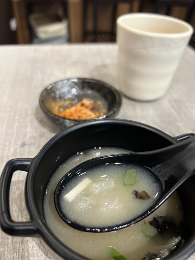 開吃.... 味噌湯-點餐後就先送來的湯品,也許是這天氣,冷的快(本人愛熱呼呼的熱湯..),但味道適中不過甜、鹹