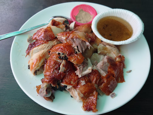 店家上菜的速度非常快,沒吃幾塊雞肉,其他菜色陸續上桌,我們的筷子先舉向初次品嚐,看起來有點像青蔥的「(清炒)蘆葦心」。雖然外觀像,完全沒有辛香植物的刺激,只有清淡的甜味,口感也和青蔥相比更為結實而脆。另外,不確定是為了增色還是為了增加口感的多樣性,還有山藥和蘆葦心作伴,在地山藥過火時間不長,保存了另一種不同的清脆。就在此時,戶外座位的缺點浮現出來,在十餘度的低溫下,雞肉很快就不熱了,加上還有其他菜色,只好打包回家。