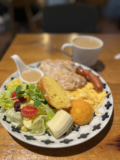Cute little cafe in Xinzhuang, did not seem to have an English menu but the French Toast set is the first item on the Brunch page of the menu. A nice collection of different flavors and textures with fluffy French Toast m, savory potatoes in mustard sauce to rose soda water aperitif. Not too crowded early on a cold Saturday...