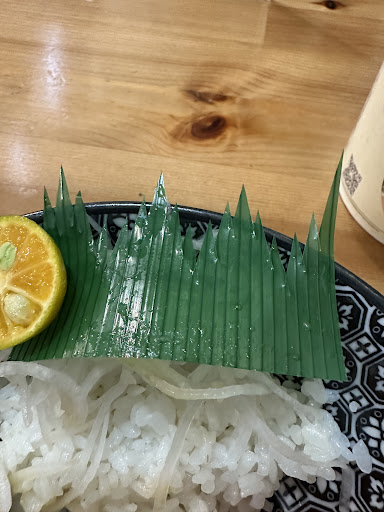 4.湯上後約8-10分鐘餐上來,鮭魚麵丼飯的鮭魚接近常溫、沒有解膩的小漬物(有一顆小金桔)、醋飯既沒水份醋的調配也有問題。 「醋飯比爭鮮的還不好吃」,這個指控真的很嚴重。入口有醋嗆,可能是醋品種挑選不對或沒加糖去調比例.....跪求了,可以好好研究一下醋飯怎麼做嗎🥲然後點鮭魚麵要選擇的日式醬,如果就是桌面的醬油,強烈建議在菜單上面根本不要有日式醬這個選擇,客人桌子上都有自己取用就可以。 因為有小幫手來問我要哪個醬,我跟他說日式醬之後,他就若無其事地走回廚房了,也沒有跟我說就是桌子上面提供的醬油,讓人一頭霧水在座位上傻等,最後自己跑到櫃檯問才知道。