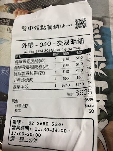 Read more20210602更 口味一樣好吃,但是價錢變好貴,沒辦法常吃,燒肉好像縮水變少了😭 —- 店面小、價格偏貴,餐點份量偏少,但好吃。 大推薦ー鮮蝦雲吞(餛飩):滿滿新鮮的內餡,蝦肉一體,看不到完整蝦,但這樣更費工、更好吃!且很大顆,乾撈麵給4顆(不愛蝦仁的女友都說讚)。 大推薦ー燒肉:很香很入味的五香紅麴燒肉,單點份量給蠻多的。 大推薦ー撈麵=很細細的麵,還不錯吃。 普通ー炸排骨:中規中矩,但也有一定水準,還不錯吃,份量比燒肉少(還有骨頭)。 其它普通小吃店水準:豆干、燙青菜、皮蛋豆腐。