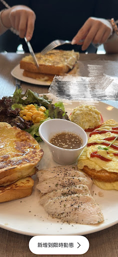 🔹日出起司法式吐司 我很愛的日出起司,可選擇半熟蛋, 法式吐司鬆軟,鋪上滿滿的起司, 劃開半熟蛋一起入口,吐司沾滿蛋黃, 真的幸福感滿滿,推薦!👍