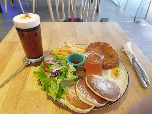 Read more因為很餓所餐點來直接吃了😂沒照片 餐廳只提供現金,對於我們習慣行動支付沒帶什麼現金的人來說有一點不方邊以外,其它都很好。 每人有低消100元。 本來點熱壓丹麥吐司,因餐點要熱壓時間大約等待15-20分鐘,個人覺得太久,因為太餓哈,所以沒點,下次空閒再點。 這次點『德式雙腸』、『糧好起司豬排』、『重量級火焰培根牛肉堡』、『唐揚炸雞』、『玫瑰咖啡拿鐵』、『糧好招牌水果茶』 餐點份量吃得飽,而且餐點有一定的水準,覺得都處理得恰到好很好吃。目前最喜歡漢堡😋 玫瑰咖啡意外的好喝,不會甜,帶有玫瑰香氣👍 上餐速度也很快。水果茶也很好喝。 自助區很齊全,有提供外帶紙袋和吃漢堡所需的紙袋,整體來說是會想再光顧的一家店👍 附...