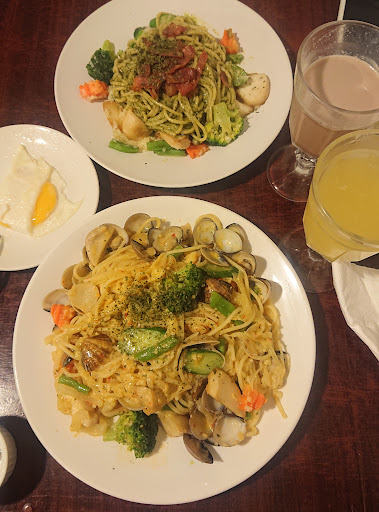 食物:份量足,價格便宜,義大利麵偏油,口味較重,吃辣的人推薦辣味的義大利麵,少吃辣的推辣度2,能吃的推辣度3、4。 套餐飲料推熱茶,會附蜂蜜自由添加,喝完還想坐一會可跟老闆再要一壺。套餐甜點有優格與冰淇淋,不愛甜的可點優格(也會附蜂蜜),冰淇淋有水密桃及鳳梨,推水蜜桃,老闆有時會研發新口味,可詢問。 (只吃過義大利麵的套餐所以不評論其他甜點及咖啡)