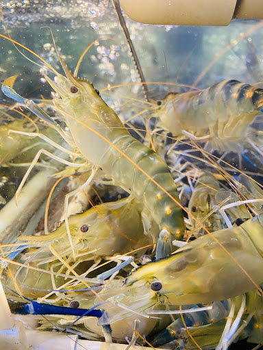 首先~店內的用餐環境還算舒適, 座位間不會太逼緊, 游著很多泰國蝦的水道就在座位旁邊, 「取餐」很方便☺️ 夾蝦的過程十分有趣😳(謝謝蝦蝦辛苦了) 水道裡不論公母蝦個頭都很大呀! 老闆沒在怕人吃的👍 (一就座馬上就來了一份招待的炒飯🤭 顧著吃蝦⋯到最後炒飯連一口都沒吃😅)