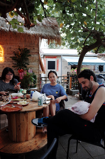 🔷再來是位置安排的問題 不管是餐廳裡面或占用到沙地外面一人的金額都是999元! ⚠️也就是餐廳裡面的客人,可以舒服地坐著餐廳的椅子同時, 外面坐在沙地的客人還要自己帶野餐墊 然後餐廳還跟你多收取100塊的木桌子租借費用, 也就是坐外面的人花了1099元還得自己帶野餐墊然後跟餐廳租借小木桌, 不得不讚嘆老闆算盤真的打得超精,讓我再一次佩服!🤭 😈老闆在IG私訊我時信誓旦旦說 現場有提供木桌但完全沒提到要加錢唷🤡 所以老闆在評論區的回文說大家都知道要帶小桌子這一點,我都以為我是在平行時空呢!