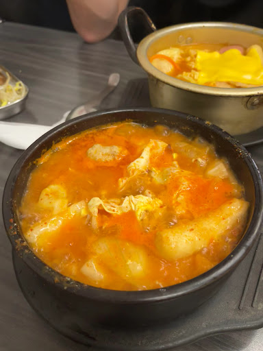 部隊鍋(小 料很豐富,味道偏甜口的微辣 辣年糕湯鍋 感覺料比部隊鍋更豐富🤪 只是搭配的是冬粉 部隊鍋配的是王子麵