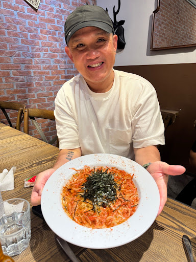 來好幾次,每次來都是必吃櫻花蝦腐乳義大利麵、白酒蛤蜊義大利麵,腐乳口味在外面從來沒吃過,小辣到微辣之間,一陣子就會想吃一次,因為真的很涮嘴,每次點就用小盤子大家很快分食完,白酒蛤蜊的蒜味也很香,調味非常剛好,蛤蜊也很多很大顆,也吃過波隆那肉醬口味,但是肉醬口味我覺得比起前兩個較普通。 中秋連假想說吃看看排餐,但覺得有點失望,似乎義大利麵還是比較厲害。 主菜:椒鹽嫩煎魚排佐莎莎醬原來不是原塊魚排,比較像是炸魚排,外面有包粉的那種,有一點失望,單吃的話沒什麼味道,魚肉是很多汁沒錯,但要自己配莎莎醬或胡椒,也不是說非常搭,調味上要加強。 主菜:爐烤蒜味迷迭香雞腿排,雞排調味一樣很清淡沒什麼特別的,就是可以想像到的脆皮跟肉汁,也許用一些特別的香料醃漬久一點,會提升記憶點。 主菜:香煎美國肩胛牛佐胡椒,牛排會問五分熟或七分熟,選了七分但上來應該是只有三分到五分的熟度,沒拍到裡面但是還非常紅也很軟,我自己是也可以接受三到五分,也不會很多筋難咬,很軟嫩,但家人就覺得點七分上來這個熟度有點誇張了,調味上一樣是非常清淡,要自己去加胡椒跟鹽巴。 三個排餐都有配青醬飯,我覺得飯是非常好吃,滿分的程度💯幾乎可以說搶了所有主菜的風采,一口接一口特別好吃,搭配烤蕃茄跟生菜還不錯,但可能擺盤是有點雜亂了,看起來就有點扣分,但這還算小問題。 派對拼盤(各種炸物):520還蠻貴的,結果只能選一種醬,還只給一小杯,要兩種醬還要加30元,這點真的是很摳⋯⋯,希望可以改一下不然感受很差,不然至少一種醬也要給個兩杯吧,單點薯條就有一種醬了,何況我們點一大堆炸物,不加錢根本不夠沾,然後炸物拼盤可能很少人點,拼盤還用不同的碗盤隨便裝,五百多元少說也要擺好看一點吧?至少要同一個大拼盤盤子吧,甚至後面那盤是晚點才上的,說上一個碗裝不下😌炸的好吃但外表看起來黑嘛嘛的,需要再加強,尤其後來又上的炸物下面墊一堆蔬菜,但也沒沙拉醬,讓人滿頭問號要怎麼吃完,服務生態度很好,但老闆麻煩加強改進這個餐點😅 套餐的沙拉好吃,沙拉醬酸酸甜甜,份量很剛好,很不錯,兩種湯(奶油蔬菜、蔬菜清湯)都稍鹹,但也蠻好喝的,蛋糕酸酸甜甜也很好吃,配上檸檬片外面很少見,一陣子沒吃到也會想念。 氣氛的話就是滿吵雜的可能回音很大,服務的話送餐態度那些都不錯,但也不記得有來加水,胡椒、鹽巴碗盤那些也都要自己拿,忘記有沒有服務費❓ 整體而言還是蠻推薦的,畢竟位置很多,聊天也很方便,也有遇過多人包場聚餐,小孩開派對的,餐點的話建議吃義大利麵,排餐因為比較貴所以期望比較高,但味道上就很普通,除了青醬飯很好吃,排餐的調味、炸物拼盤擺盤改進了絕對是滿分五顆星,希望店家可以再稍加改進,其餘餐...