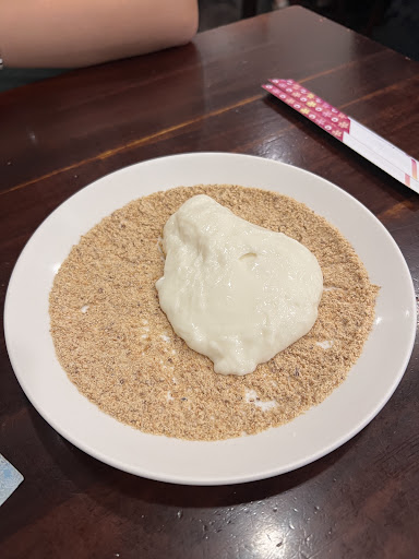 Read moreThe peanut milk mochi was really nice! It’s like a big blob in the middle so you cut it and roll it with the peanuts outside (that will stick on), it melts in your mouth and it’s kinda cold so it tastes cooool. There’s usually a queue. We ordered the passion fruit fizzy drink too and it was ok. Would be great if they didn’t use one use cutleries but it seems like a norm here 😬 do not leave anything else behind they’ll tell you to take it with you and chuck it at the bins outside (we saw them telling off a group of people) the shop is on a very busy street and it’s not hard...