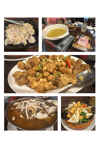 Read more黑嚕嚕味道很特別很下飯,類似肉燥那樣但不死鹹,蘆筍燴鮮菇普通不到特別,三杯烏骨雞肉質偏硬味道還不夠入味,糖醋魚片還可以,魚片很嫩不會過甜,炸蚵仔酥普通沒特別好吃,鳳梨蝦球炸得有點過硬很可惜,脆皮雞腿外皮稍硬但裡頭肉質鮮嫩多汁,不過沒到驚豔,鮮魚蛤蜊鍋湯頭還不錯不過稍微有魚腥味,魚肉肉質是不錯的,點一道菜會送飲料一杯,有奶茶紅茶柳橙汁果醋,果醋喝起來就像王品集團那樣差不多,奶茶還不錯不會過甜,店內擺設不錯環境也乾淨舒適,餐點的部分大多還可以不會太雷或驚豔所以基本給三顆星,但老闆娘態度很客氣...