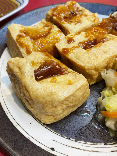 臭豆腐聞起來很香,吃起來沒有很臭。 皮酥脆裡面的豆腐肉很紮實,會⋯⋯會吃得有點飽的那種紮實,老闆可能貼心的怕只有豆腐不夠,泡菜也是進行一個海量的配給。