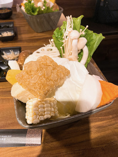 食物: 1、鍋底:當天點黑蒜鍋、酸菜白肉鍋;覺得酸菜白肉算可以,因為湯底有少許肉片、酸白菜份量也夠,酸度還能調整,這點很不錯;不過酸白菜的發酵度跟調味搭配起來還是覺得少了些層次感;黑蒜鍋挺普通,雖然有蒜頭味,但加價98元覺得CP值不太高。大部分鍋底都要加價,值得與否見人見智。 2、我們是點海陸雙人鍋,肉片份量普通,但擺盤還能接受,松阪豬涮起來不會太乾硬;海鮮只有草蝦比較好吃,明顯有甜味,天使紅蝦、白蝦吃起來都不太好吃,蝦殼也不好拔,但後來服務員說天使紅蝦是生食等級,不要煮太久不然會有異味(建議之後要跟客人提醒);干貝就是便宜的那種,煮了會縮水慢慢消失;不知道為什麼雙人套餐只有一顆干貝? 3、醬料基本上都很普通,沒有驚艷之處。 4、飯後甜點豆花也是中規中矩,沒啥特色。 5、男友加點滷肉飯,還算蠻好吃的,但算有點是南部口味,滷肉明顯偏甜,但肥瘦相間切丁去滷,還蠻好吃的。(滷肉飯湯汁多、飯比較軟,是濕軟型的滷肉飯) 6、飲料都是很普通的手搖飲,加價的飲料也讓人覺得好像沒有太大加價價值。