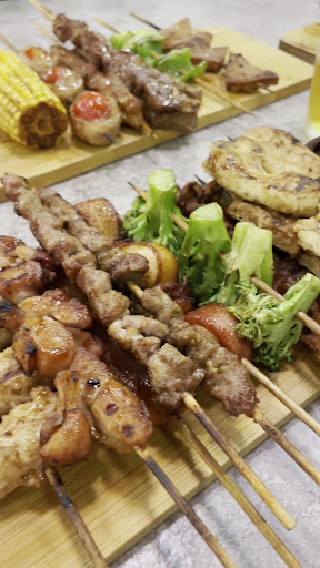 Grilled seafood, meat & veggies furnished in a casual, rustic open-air venue with sidewalk seating.