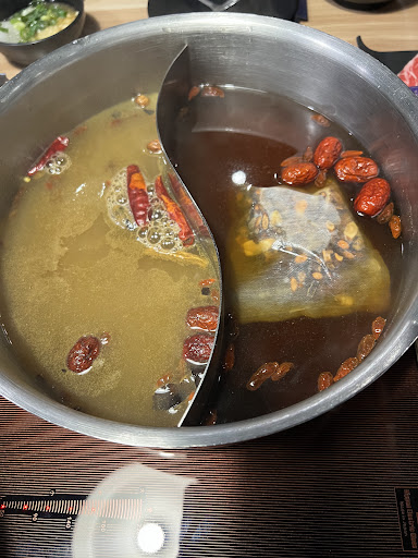 The reviews of this place attracted me and they are well deserved! I went on a Sunday night and was seated right away. The server did not speak English and I speak no Chinese but we were able to use Google translate to excellent effect. She let me know of the deals and inclusions and substituted for me after I let her know I have an allergy. The sauce bar is well stocked, everything was fresh and came out very quickly. For the price, you are given a lot of food and a dessert! The spicy milk broth is so good. I had a beef/pork set that came with seafood and I ordered vegetables. There are options for dessert but I got the fresh milk ice cream to go. I highly recommend a visit if you're looking for...