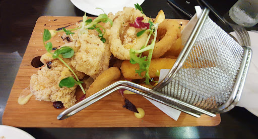 Read more沒辦法給高分的原因是「服務」 餐點整體算還不錯,可惜店家的員工訓練不夠妥善。二人座的桌面真的非常小,可以體諒店面受限制的緣故,當時店裡人數不多尚有3桌四人座,在沒有訂位的情況下是否能夠判斷讓客人入座呢?亦或是提出若來客數多再轉移至二人桌之相關方式等等。 我們點雙人套餐,光是放炸物拼盤、主餐盤x2後桌上滿到沒辦法再放餐點,連飲料都要擠出位置貼著牆面擺放,整個過程綁手綁腳小心翼翼,承受著會不會掉在地上的壓力用餐,真的很累人😔 印象很深刻上主餐盤時,因為炸物拼盤尚未食用完畢,服務員前來上主餐盤,眼看我們瞧位置放到"進店的餐具盤上",服務員等太久才主動伸手幫忙,何不以更好的方式處理,例如拿到廚房換成小盤呢?