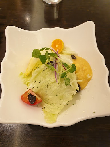 ※沙拉/湯品/麵包 4分 湯品非常好喝,搭配上抹醬(鹹)麵包是很好的開胃節奏,湯內的羅勒葉香氣十足,完美點綴,非常推薦加購升級成套餐! ※炸物拼盤 1分 這1分是給肉的,其他四樣(薯條/洋蔥圈/魷魚圈/乳酪條)真的很雷,完全不推薦 ※主餐-辣味檸檬小卷 3分 麵條的味道和彈性是良好的,但是小卷的份量超級無敵少只有二個(如圖),蠻失望的!辣度非常低,喜歡吃辣的不建議點,另外店家有添加四季豆,也許是用來代替蘆筍吧,整體蠻不搭的,但比放高麗菜好。 ※義式番茄海鮮燉飯 (因為沒吃也沒拍照,不方便做點評,海鮮量一般) ※甜點/飲料 2分 甜點不太合口味,不多做說明,飲料點覆盆莓鮮桔茶和新鮮果茶,皆是熱的,前者偏酸,後者偏甜,店家會給一個透明茶壺和杯子,再倒時要注意,若倒太急會從茶嘴漏出。