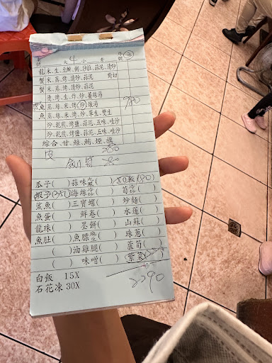 Read moreHad lunch here after our Bitoujiao hike. Pros - fresh seafood, cooking was delicious Cons - overpriced despite being near the port. No prices on the menu. Total amount will be shown to you after you pick your preferred dishes. It shows they're not transparent as it should have the prices for each dish. We were served dessert despite not ordering for it - our fault for thinking this was complementary. A bigger bill was shown to us on the counter.