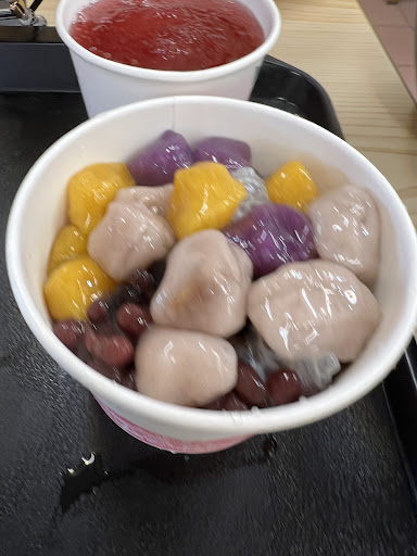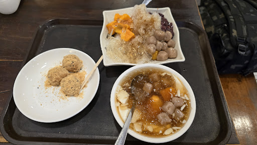 Ordered the mochi with peanut, iced taro and sweet potato dessert and soya beancurd with taro balls and sweet potato. It was a very hot day so the desserts help to cool down. Love the environment as it is very nostalgic. They even have a life-size paper board of a person, I think it is the owner. This place is at the other side of the track away from the main Ruifang station. Less...