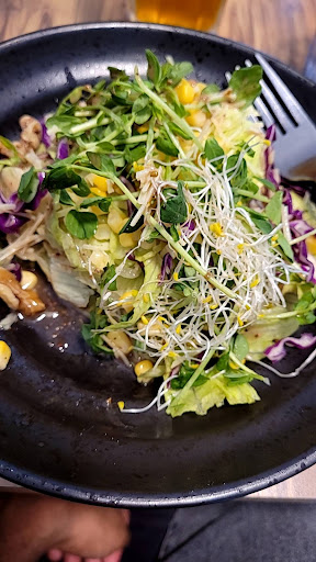 The drink was your average sugary green tea, you can also get sugar with black tea flavor if that's your cup of tea 😁. In summary, too sugary, didn't enjoy it. You can have it without sugar, but only hot tea, adding a non sugary cold drink option would be great. Worst case, you can get water, lots of it, they literally put the whole pitcher on your table, which is good! 3 out of 5.