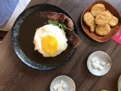 🔸歐姆蕾蛋早午餐盤 $219 🌕🌕🌕🌑🌑 內容:歐姆蛋捲、焦糖烤布蕾、沙拉、可頌佐蜂蜜 可頌酥脆、烤布蕾整體偏甜 歐姆蛋捲內料有起司、番茄、玉米、美生菜