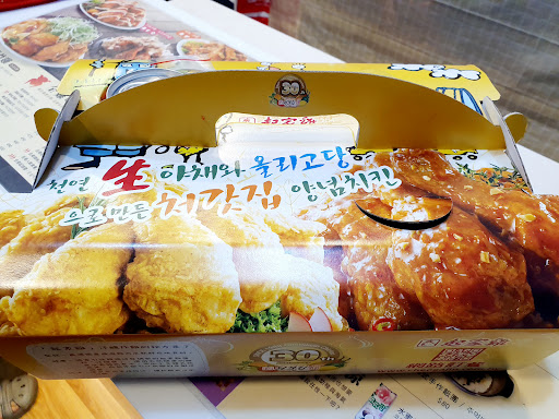 ☑半半原味辣味(470元) = 外帶是用一個類似水果盒的厚紙盒裝盛,自取還有送一瓶250ml可樂跟醃蘿蔔。兩種口味分別裝盛在不同的紙盤裡,雖然說是炸全雞,但還是感覺這隻雞的尺寸比較小。算囉~...