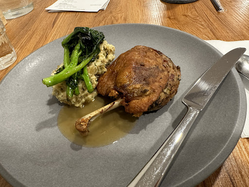 #法式油封鴨腿 我不敢吃禽類的人,覺得這道菜品很優,首先是香脆的皮,一口咬下再嘴裡卡滋卡滋的舞著。再來是香嫩的肉,一口咬下鴨油的香瞬間再嘴裡噴發,兩者搭配一起入口,如同一文一武缺一不可。