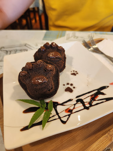 Read moreFirstly, the two owners are very friendly and inviting. They realized most of us in our group were foreigners and they were able to accommodate us in English, and provided us with an English menu. The lady owner walked us through the menu and showed us photos of the menu items. We ordered the mango smoothie, an iced caramel latte, and a hot hazelnut latte. All of the drinks were delicious, the smoothie was refreshing and dense, the lattes were not too bitter, too sweet, just perfect. We ordered 2 desserts and they were divine and not over sweet like how some American desserts can be. The cafe has a house cat and he is very cute and friendly. 10/10 would recommend if you visit the Houtong...