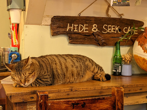 Wandered in on a chilly and overcast day while visiting the cat village. The couple that owns this cafe are retirees that decided to come back to the husband's hometown. Very kind and chats to their customers. The lady can speak a little bit of English to help take orders.
