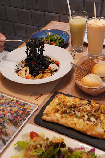 Read more裕隆城剛開幕就有來過的NINI 寬敞的歐風裝潢、採光讓人放鬆,店員的服務也非常周到,帶一家人來聚餐正適合✨ 餐點除了義式麵、飯食,還有多款特色開胃菜、沙拉和手工披薩、排餐…等,不用怕點不到想吃的😋 🥗帝王燻鮭魚沙拉360元) 🧆鮮手工墨汁燉煮透抽(368元) 🐂香檸青醬拌煎牛肉(328元) 🍕四騎士披薩(190元) 🦑辣味海鮮墨魚黑麵(360元) 🥝芭樂奇異果汁(160元) 🍼手作木瓜牛奶(160元) 這次我們點的是2人套餐,也有4人套餐的選擇 套餐包含了麵包、每日濃湯、開胃菜、披薩🍕、多款飯麵選擇及飲品,划算之外也能吃到豐富品項 燉煮透抽煮到軟嫩但保留新鮮Q彈,唯一小缺點就是太好吃會不小心吃到牙齒黑黑🫢🤣 另一款青醬拌牛肉的調味帶點中西合璧的感覺,酸、辣味和青醬將骰子牛包裹,好吃又開胃🌶️ 再來他們家的披薩是使用義大利高強度麵粉加入老麵發酵的羅馬手工披薩,吃起來外脆內Q 四騎士口味使用4種起司🧀,再淋上蜂蜜更有層次感✨ 義大利麵的部分吃過好幾款都無雷,這次選了橄欖油清炒類的海鮮墨魚黑麵 海鮮很豐富也不會過辣,雖然他們家的麵、燉飯類份量都很大還是完全不膩口🖤 最後也要推一下他們家的果汁,是新鮮現打、喝得到自然風味的那種喔🥰 整體而言, NINI的餐點選擇豐富、份量十足,現點現做的堅持帶來新鮮美味,難怪經營25年還是評價很高,個人覺得裕隆城店的用餐體驗非常好 不過因為假日生意很好,建議大家要訂位喔! 更多介紹請看instagram:@...