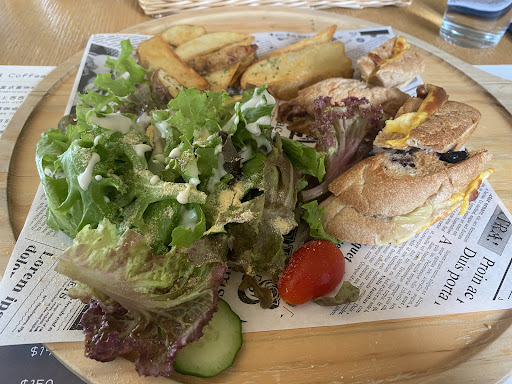 The sandwich 🥪, in particular, has a unique and distinct style, quite different from the typical sandwich. The bread is on the drier and harder side, and it comes with a side of lettuce salad and fries. Overall, the value for money is not great.