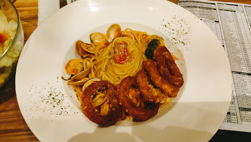 The place has really good ambiance, the servers were also very courteous and respectful and giving assistance. The food tastes great, had the seafood pasta because I love seafood. And their salad is also very good. Will come...