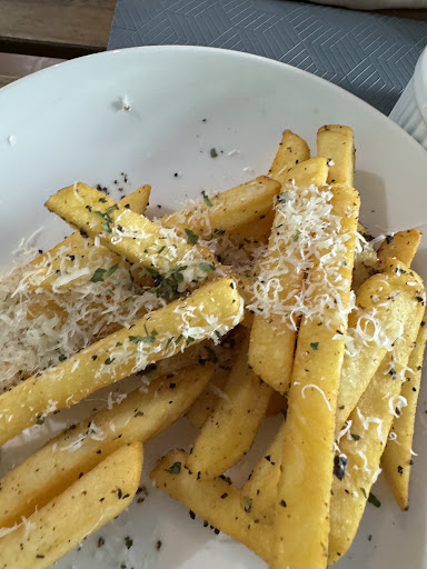 Pallet Bistro is a surprise as far as flavor and quality. Would highly recommend the Parmesan risotto with seafood marinara and truffle fries as an appetizer. Mom got the cuttlefish Caesar. It’s not a savory Caesar, more of an Asian style sweet dressing. For a tourist area, it’s tasty and clean. Also dog friendly! If you need a place to sit and escape the hustle and bustle, I would recommend. My only issue is that if you are not tech savvy, it takes a minute on how to figure out the order system. Sometimes offering to take an...