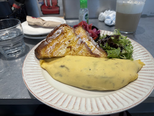 Read moreThis place is indeed a disappointment. The receptionist didn’t welcome us or notice we walking-in. The place is busy, music is too loud. Not understand why some people commenting this place “decent”. It has nothing related to that! Having food at a stainless steel table makes me feel a street market. The ordering system is also a joke, if your customer has to keep getting helps before they can send out the orders. It means the system is not working and just making more troubles. Then food - juice is from the box, lots of suger. I gave up right away and ordered another coffee to be safe. And I had an omelet, and this is the funniest omelet I’ve had in my life. Toasts at the side are wrapped with syrup and suger power. Exercise me? Can I just have a normal omelet and toastie?! My husband is also disappointed with the burger. Nothing is right here.Will never come...