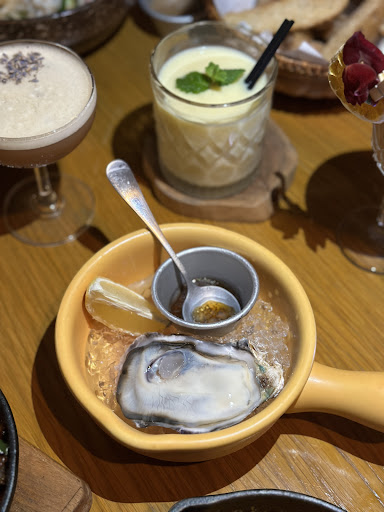 Read more店裡為南洋小島風格的設計,氣氛很適合朋友一起小酌。 看到菜單會不知道如何點餐,相似品項的東西分散多頁,點餐時間就花費比較多了。 松露薯條香味很濃郁,松露味與薯條香味融合在一起,很適合邊聊天邊吃的小點心;月亮蝦餅吃起來不會太油膩,但沾醬偏甜,有點可惜。 酸辣海鮮意大利細扁麵是我們一致認為今天第一名,麵體很Q且吸附了滿滿湯汁,每一口都能吃到海鮮的鮮甜感,海鮮很多而且很新鮮,雖然有用辣椒調味,但辣度介於微辣至小辣,不敢吃辣的人建議也可以試試看。 綜合海鮮燉飯小卷鮮甜,飯也吸附了很多湯汁,香味十足,但與意大利麵相比略為遜色。 手撕豬蒜辣比薩為薄餅皮,吃起來有餅乾的脆感,青辣椒也有在比薩的餡料中,增加整體的風味,不過辣的地方有點不均勻,部分超辣、部分普通,朋友看到還說有這麼誇張嗎…..😆😆😆。 與朋友聊天時,店員招待我們吃泰味涼拌香煎蛋沙拉,口味很清爽,可以把剛剛吃完飯的膩感給帶走,酸辣度調味適當,洋蔥很新鮮,吃起來有嗆辣感與煎蛋一起吃很搭。 最後店家也請我們喝一小杯shot,很順口但酒味有點重(因爲不太喝酒,怕酒味太重),朋友都說非常不錯�...