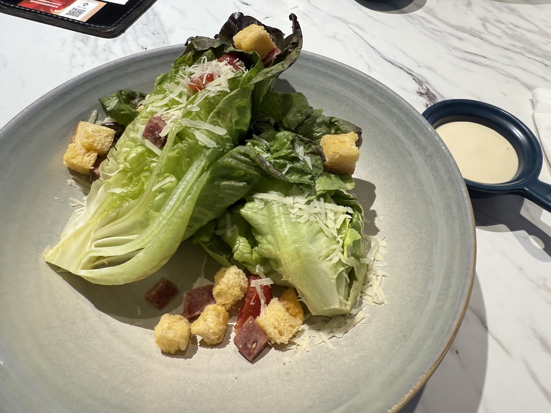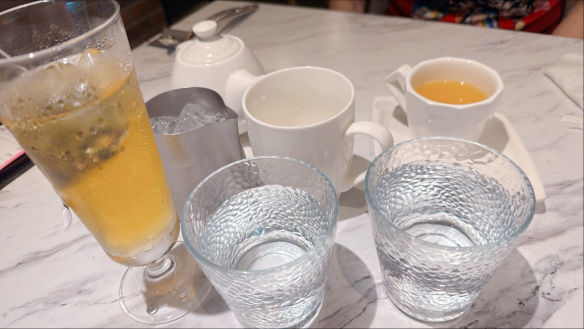 結果在上完沙拉後,服務員突然招待了整桌一人一杯特調飲品。另外因為上主餐牛排時,服務員把其中兩份不同熟度送錯,點7分熟的吃到5分熟,服務員原本是打算兩份餐點已經吃了的部分重做,但我們表示沒關係,只要再烹調5分熟的那份到9分熟就好。 不過可能是因為重新烹調的熟度比較難抓,加上那位友人不敢吃太生,覺得牛肉肌紅素和俗稱的血水還是很多,所以請服務員再送給師傅烹調,第三次送來時牛排就已經完全沒有血水了,我們同桌一致覺得能煮到剛好全熟而且沒有焦掉真的很厲害。 雖然是因為一開始服務員送餐放錯(沒有確認熟度就直接喊餐點名稱後放餐到桌上),導致必須調整熟度,導致肉品再次加熱後熟度和品質可能都不是那麼好拿捏,間接導致了第三次加熱,但我們還是覺得麻煩到外場的其他同仁。 而且在等待第三次加熱的途中,另一位可能也是主管階級的同仁,突然又送了一份水果沙拉,表示怕那位友人主餐等兩次等很久所以主動招待我們,這點我們真的也很不好意思,也很感謝你們如此積極的彌補錯誤。