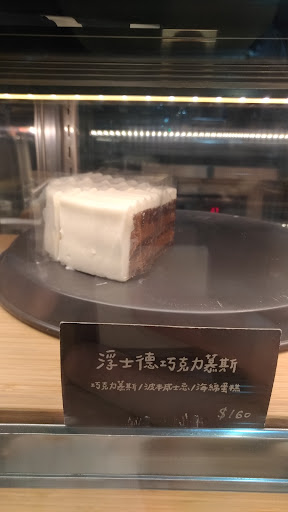 浮士德巧克力慕斯(160元) 半徑10公分(包含厚度0.5公分的鮮奶油抹面),看起來像10切或12切的角度。高度約6.5公分(包含4.5公分的巧克力蛋糕(及慕斯)+0.5公分鮮奶油抹面+1.5公分的巧克力碎片)