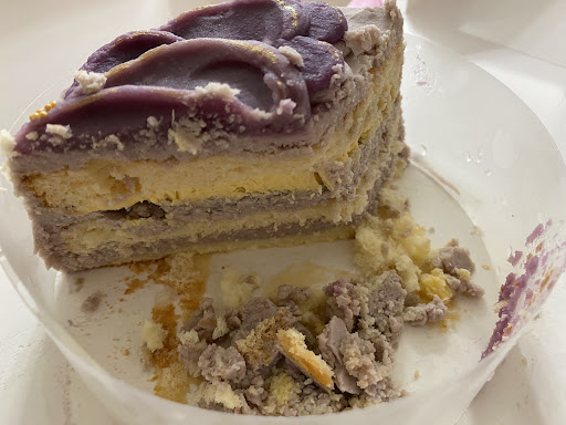 重點來了⋯⋯ 到隔天中午要吃發現蛋糕體吃起來鬆散且有點呼呼⋯ 芋頭餡也感覺是冷凍後退冰的口感有點含水的感覺,其實蛋糕沒壞掉也很美,但是口感實在不佳 整體感覺就是預先製做然後冷凍太久, 其實訂單多要冷凍比較久是沒關係⋯只是在技術上也要能克服這個問題,不然不僅吃不到師傅們...