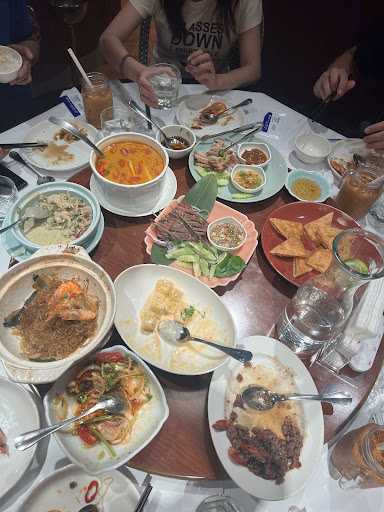 泰味蒼蠅頭220 空心菜、檸檬葉、豬絞肉,搭配紅咖哩,味道超棒 我覺得非常的辣,比另外要的泰國辣醬還要辣 很推薦 檸檬清蒸魚480 鱸魚,淋上檸檬汁、蒜蓉、辣椒、香菜的獨門醬汁,酸辣的帶勁口感,真的非常好吃 魚肉一定要沾滿湯汁,而且越煮越入味越放越好吃 風味椒麻雞300 外層香酥,肉質鮮嫩,搭配椒麻醬汁真的非常好吃! 酸辣海鮮湯350 海鮮有海蝦、蛤蜊、中卷等,讓酸辣湯頭更添鮮美,喝的時候要小心很容易被辣油嗆到 BBQ嫩烤松阪豬395 吃了一個覺得有豬騷味,搭配蝦醬吃還是有豬騷味,搭配椒麻醬還是有騷味,整個大地雷 地雷 冬粉鮮蝦煲480 十隻蝦,肉質極為甜脆甘美,與冬粉文火細熬煲煮,本人不太喜歡吃冬粉,但是這個讓人停不下來,真的很好吃,好開心同行友人點了,才有機會品嚐這般美味。 ㄍㄨㄐㄧㄡ西米露 (冰)100 西米露、椰果的口感很多層次,熱帶水果加上椰奶的濃醇香甜,...
