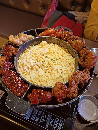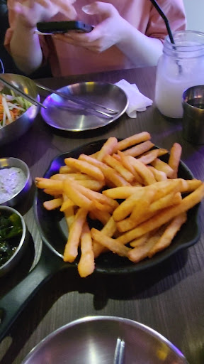 冷麵 有小辣以上 松露薯條 沾醬好吃 韓國一隻雞 石鍋拌飯 店員能幫忙處理 雞湯蒜香味濃 肉嫩連馬鈴薯 都煮透軟 起司地瓜 要在店員拌好上桌熱熱吃👍🏻 半半炸雞🍗有甘醬辣醬各半 甜甜辣辣 🐽也會包生菜包肉了 期待下次再去吃