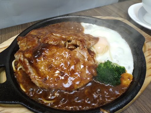 Read more其實是在熊貓訂了2次外送,很驚訝...才照地址來店裡吃吃看的! 平價牛排/厚切沙朗CP值高,巨無霸雪花牛雖份量大,但厚度稍微薄了一點,有點可惜!點巨無霸雪花,麵老闆會另外用鐵板做一份喔!醬料蘑菇跟黑胡椒可選,老闆貼心還另外裝了黑胡椒醬讓我們自己另外加... 附的麵條是傳統油麵細麵條,吃過所有平價牛排最好吃的鐵板麵,份量毫不手軟,還有一顆新鮮雞蛋! 湯品是酥皮濃湯一碗,若改成自助式會很開心...飲料跟冰淇淋都有自助吧,吃的很開心!小小店面,乾淨明亮,員工跟老闆都很用心在打理,看老闆收桌子擦的很賣力,才知道怎麼維持的如此整潔!店員也是很有禮貌,未吃完的餐點幫忙打包,沒有不耐煩,反而客氣的請我們稍等他先去洗手,再來端走餐盤...送客離開的時候不忘鞠躬謝謝...我還以為我來到日本!這種小店,不支持不行!什麼都漲的年代,能有這樣的品質跟服務,覺得很難得,食物喜好各有不同,...
