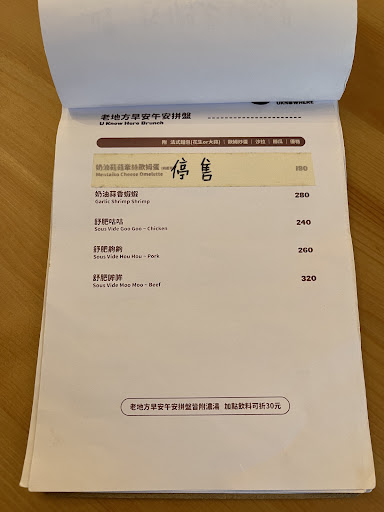 Read more早午餐市場仍然方興未艾啊!雖然還有好多家早午餐咖啡館我來不及去踩點,但是新開的又冒出來了,這家位在板橋奇妙地理位置的『老地方咖啡』,就是一家似乎還在試營運的小店。 簡潔的文青風格,店主應該是年輕的妹子,賣的東西也很簡單,但空間還算明亮舒適,所以即使是平日,客人也還不少,多半都是年輕人,我猜測應該是台藝大的學生們吧! 早午餐似乎就是主菜的差異,附餐是一小杯南瓜濃湯,還給了一小杯烤吐司丁丁,滋味尚可。 我選的是『奶油蒜香蝦蝦』早午餐拼盤,可以選大蒜或花生麵包🍞,搭配炒蛋🍳、沙拉🥗,烤櫛瓜🥒、優格🥣。整體來說,還算不錯,尤其沙拉給的蔬菜鮮嫩脆口而且不是用便宜的美生菜來應付一下。炒蛋嫰度也算不錯,優格和烤櫛瓜表現也不俗。 就是可惜在主菜。我的奶油蒜香蝦蝦🍤基本上還沒有太大問題,就是沒有鍋氣,香氣明顯不足,但吃起來還可以,至少店主用的蝦蝦不是那種泡藥水的脆蝦仁而是帶尾的冷凍蝦仁,整體而言已有中上水準。 但『舒肥哞哞』早午餐拼盤的牛排就。。。很舒肥!值得嘉許的是320元的牛排🥩用的看起來應該是板腱牛排,可能因為等級沒有很高所以選擇用舒肥的手法,但整個狀況看起來是用了過高的溫度去舒肥,再加上舒肥完之後似乎也沒有用高溫去把表面煎出梅納反應,所以整個牛排是韌而咬不動的,筋也沒有化開,再加上沒有梅納反應所以完全沒有香氣,+駒笑說,這不是沒有梅納反應,應該是「沒有反應」🤣🤣🤣🤣。 飲料是要另外加點的,點早午餐可折價,我選的美式咖啡屬於差強人意。飄浮冰咖啡據說甜度還不錯。 甜點櫃裡只看到起司蛋糕,本想點來嘗嘗但已吃不下了。 空間是舒服的,目前也沒有用餐時間,我們坐在門口舒服的高腳椅上聊天聊了一下午...