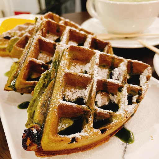 🍵靜岡抹茶拿鐵 🥞精選巧克力棉花糖鬆餅 選用75%巧克力,鬆餅裡面是QQ的麻糬, 趁熱吃是最好吃的!搭配的鮮奶油,奶香味特別濃醇,但很爽口,真的是大推😋