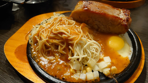 📍香煎雞腿排 $160 雞腿排軟嫩 可以感受到一點雞汁跟蘑菇醬的香氣在嘴裡交融 每一口都非常對味 這家厲害的地方是可以搭配雙拼折抵$70(也就是第一份主餐+第二份主餐折$70的價格)於是多點了一塊特製豬排嚐鮮沒想到有被驚艷到 豬排肉質很厚實 帶一點點軟脆的脂肪 吃起來不會油膩又有油脂香氣 厚厚一片很有咬勁之外還沒有乾柴的部分 同時享受雞腿排和豬排雙重口感 真的非常享受比較讓我出戲的是麵條😂個人比較喜歡配正宗的粗鐵板麵 細麵是更容易吸附醬汁 就憑個人喜好