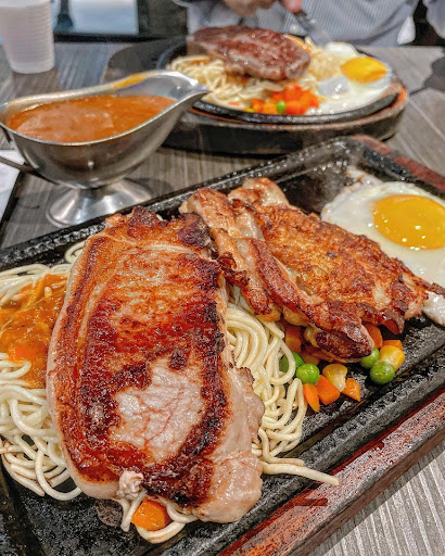 📍香煎雞腿排 $160 雞腿排軟嫩 可以感受到一點雞汁跟蘑菇醬的香氣在嘴裡交融 每一口都非常對味 這家厲害的地方是可以搭配雙拼折抵$70(也就是第一份主餐+第二份主餐折$70的價格)於是多點了一塊特製豬排嚐鮮沒想到有被驚艷到 豬排肉質很厚實 帶一點點軟脆的脂肪 吃起來不會油膩又有油脂香氣 厚厚一片很有咬勁之外還沒有乾柴的部分 同時享受雞腿排和豬排雙重口感 真的非常享受比較讓我出戲的是麵條😂個人比較喜歡配正宗的粗鐵板麵 細麵是更容易吸附醬汁 就憑個人喜好
